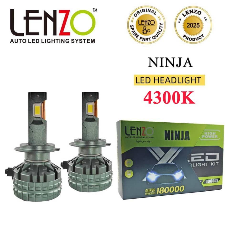 هدلایت نینجا *NINJA 4300K* از برند معتبر *لنزو* نتیجهی تلفیق مهندسی دقیق و طراحی مدرن است. نوری سفید متمایل به زرد(آفتابی) با دمای رنگ ۴۳۰۰ کلوین، مناسب برای رانندگی در شب، جادههای بارانی و مهآلود – بدون خیرگی و با دید طبیعی و شفاف.