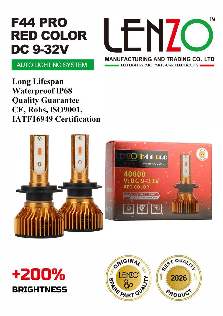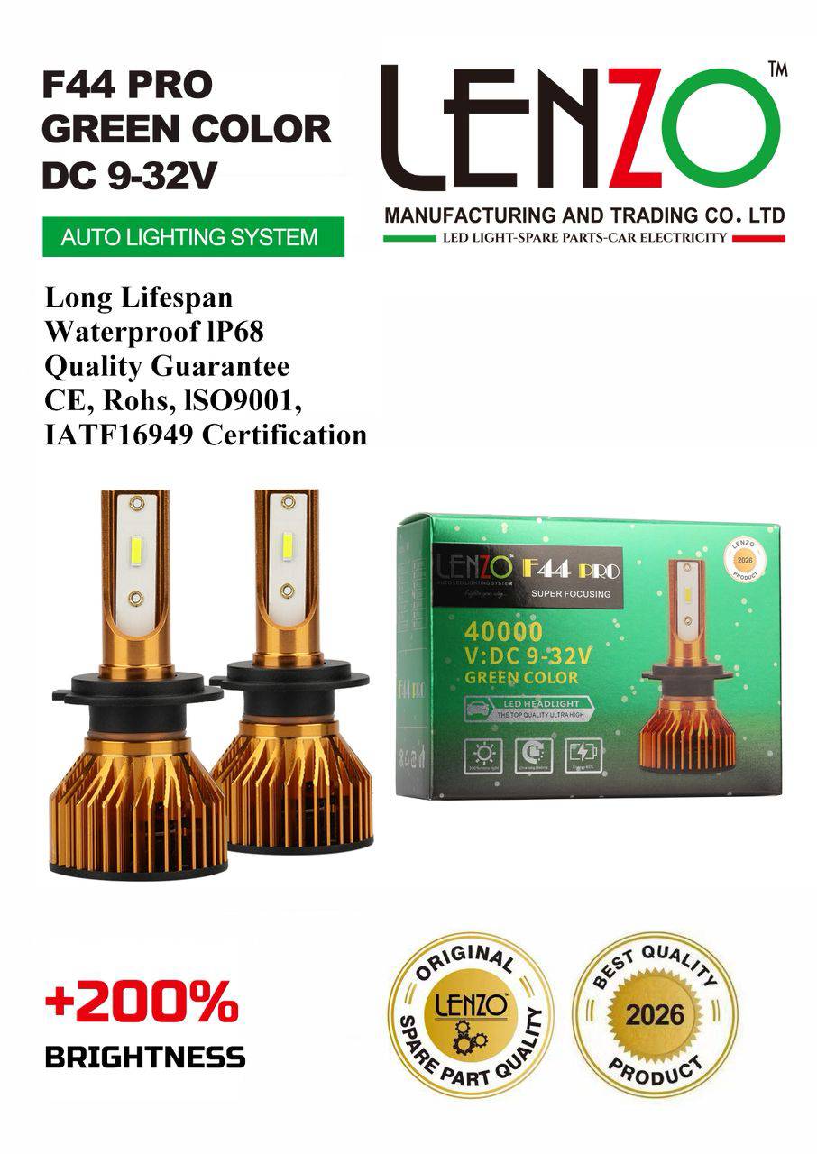 هدلایت F44 PRO برند LENZO یکی از خاصترین و قدرتمندترین هدلایتهای LED بازار است که با نور رنگی (سبز بنفش.قرمز.ابی.ابی تیره)، روشنایی فوقالعاده و طراحی حرفهای، انتخابی متفاوت برای رانندگانی است که هم دید بهتر میخواهند هم ظاهر خاص و اسپرت.